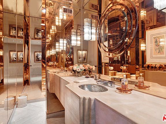 Virtual tours available via Zoom or Face Time. To schedule an appointment, please contact LA1 or LA2 24 hour notice required. Great details throughout w/ high vaulted ceilings, travertine floors, & custom touches. This home offers the ultimate in prestige w/ a convenient west side location and a full set of amenities. Enjoy mountain & city views from most rooms. This 5 bed/6 bath features an XL master suite that could double as 2 separate beds w/ his & hers walk-in closets, 2 full baths w/ steam shower & Jacuzzi tubs & balconies. Other features include an abundance of custom built-in storage, 2 full maid bed/baths, multiple wine fridges, 2 wet bars, kitchen w/ center island, as well as formal DR & LR, large formal breakfast room, den & upstairs guest area with ¾ bath. Huge outdoor balcony features outdoor kitchen & dramatic head on city views. Secure & private, the complex features valet, guard gate, tennis court, pool, newly updated gym, 6 parking spots & 2 storage units