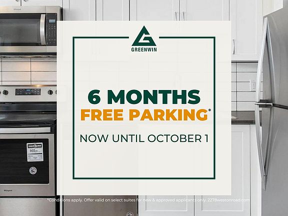 AboutResidents enjoy fully renovated spacious suites that boast open-concept kitchens which feature chrome accents, new breakfast bars, hard surface countertops, undermount double sinks, and glass backsplashes. All suites include a stainless steel refrigerator, stove, and microwave. Dishwashers are available in select units2278 Weston Road is in close proximity to local shopping plazas and big box stores for your day-to-day necessities. We are close to parks, schools, and medical facilities. Residents enjoy easy access to public transit via the TTC, GO Transit and Weston UP station, and to major highways.This building is proudly BOMA BEST Silver certified. As one of North America's largest sustainability assessment and certification programs, BOMA BEST is committed to supporting smart and sustainable building operations across the globe. Our Silver certification underscores our dedication to sustainable practices and our continuous journey toward enhanced environmental stewardship.Utilities IncludedHeatGet 6 months free parking when you sign a new lease on select suites before December 1, 2024!E & OE Conditions apply.