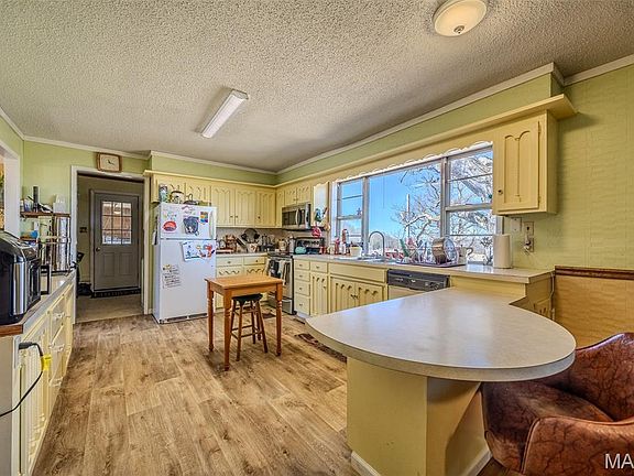Discover all the possibilities with this 3-bedroom home on 5 ACRES. Located just a mile from city limits on the Mother Road of Route 66. This property features a lovely residence and a spacious workshop. The beautiful land includes great spots for your Garden, good Pasture, and good fences, making it ideal for a cow or two. THE HOUSE IS COMFORTABLE & boasts three bedrooms, one bath, two living areas, and a storm shelter/storage area in the basement. The family area features a rustic fireplace for those cozy winter evenings. You'll love the PICTURESQUE VIEWS from the kitchen window, which overlooks your back yard and neighboring farm with fields, creek, and wildlife, including deer and turkey. Additionally, the property boasts I-44 visibility and offers great potential for your new business, featuring a newer metal roof and HVAC unit. More land is available.