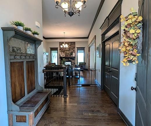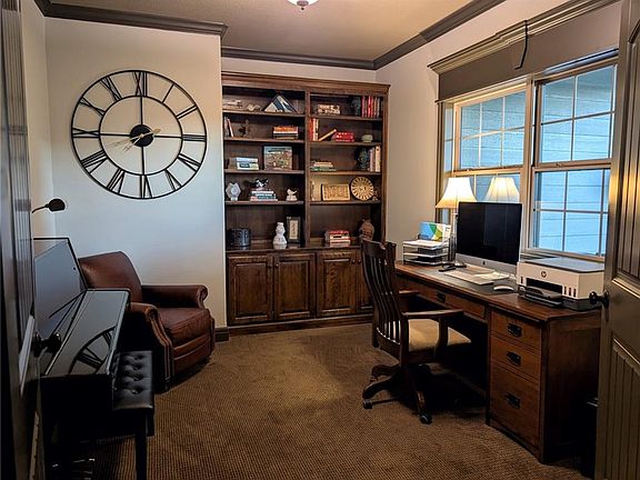 Inside, you’ll find a warm and inviting layout with generous living spaces, ideal for both everyday comfort and entertaining. Large windows fill the home with natural light while showcasing the surrounding landscape. The kitchen offers ample cabinetry, modern appliances, and an easy flow to the dining and living areas. Come check out the awesome butler's pantry too. Bedrooms are comfortably sized, with the primary suite featuring a private bath and plenty of closet space. Laundry room and a built-in desk are on the main floor as well. The downstairs has 3 bedrooms, a family room, a full kitchen, laundry room, bathrooms, workout room, a music room and a safe room. This home has 4 full bathrooms and 2 half baths. Perfect for multi-generational living.