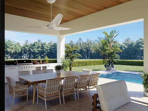 Saltwater poolQuartz countersSecurity systemSummer kitchenStatement ceilingsSpa-style bathsBeverage bar