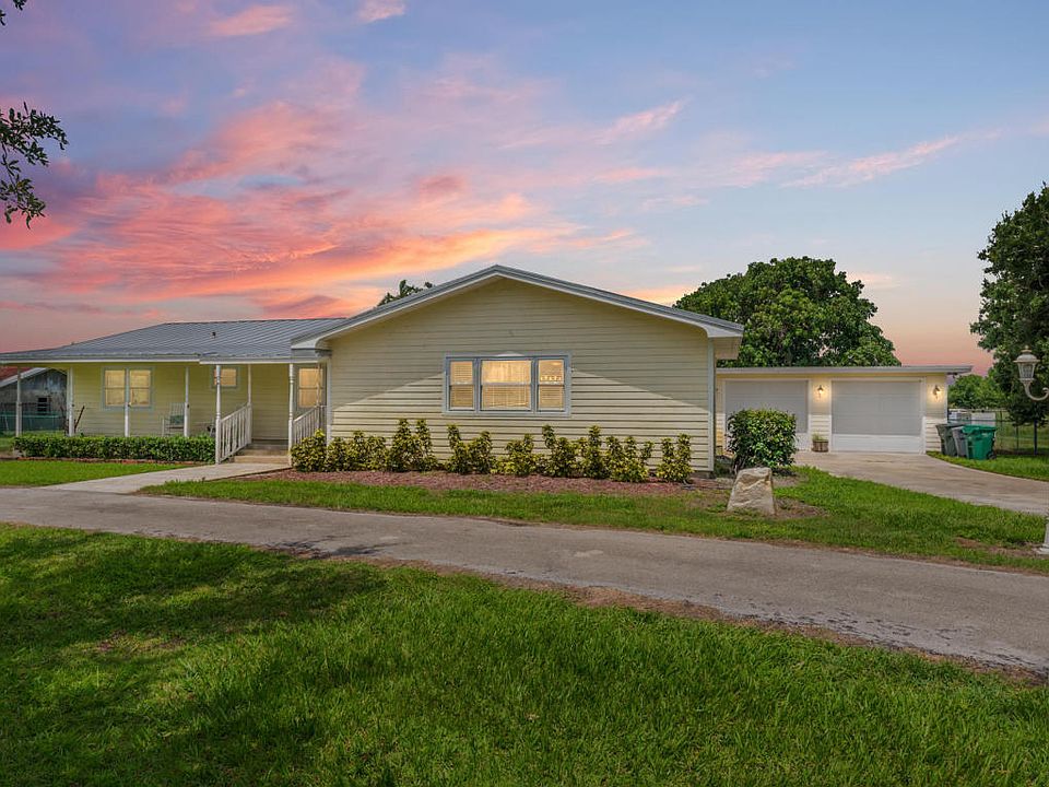 Quaint country living! This adorable ranch style home is positioned on a spacious 1.5 acres. Enjoy the sunrise on your cozy front porch overlooking mature oak trees. Plenty of room in this 2,727 living SqFt home featuring an office, original hardwood flooring, hurricane impact windows, dual fireplaces, renovated kitchen with a TON of cabinet space, the laundry room is a dream, and an incredible back family room w/ fireplace. The Roof was done in 2006, backyard is fully fenced, county taxes only & FPL electric!