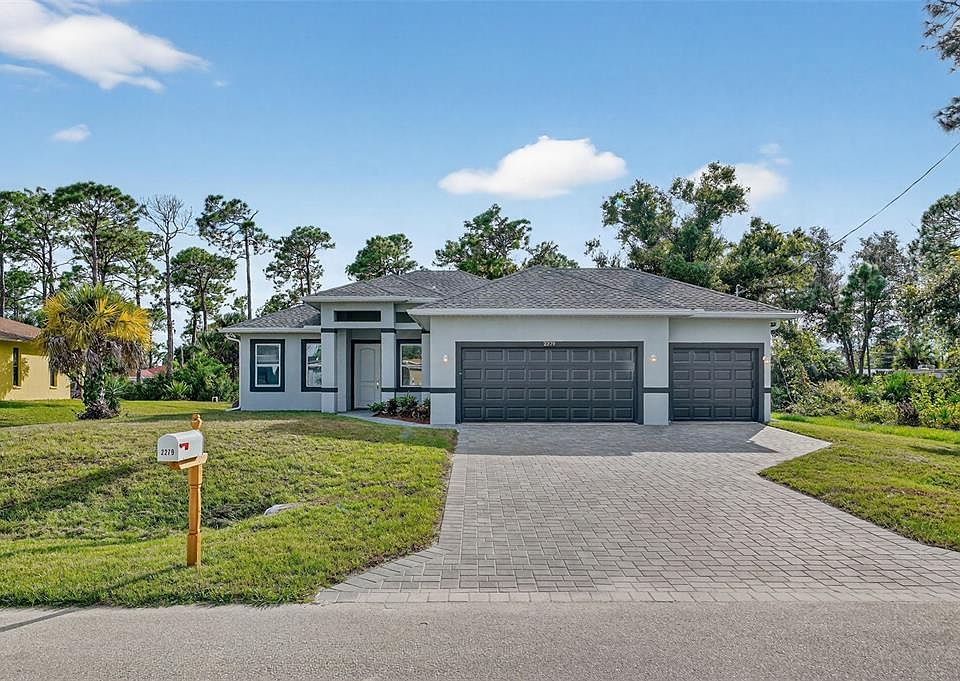 Welcome to this stunning brand-new home offering 1,839 sq. ft. of elegant living space, thoughtfully designed for modern comfort and style. This residence features 3 spacious bedrooms plus a versatile flex room or den—perfect as a fourth bedroom, home office, or creative space, allowing you to customize it to your lifestyle. The open-concept layout seamlessly connects the kitchen, dining, and living areas, creating an inviting setting for relaxing or entertaining. Enjoy quality finishes throughout, a modern kitchen with a central island, and the convenience of a three-car garage. With a total area of 2,866 sq. ft., including a covered lanai, this home blends functionality and sophistication in one beautiful package. Additional highlights include a SMART KEY system and a 2-10 Home Buyers Warranty for peace of mind. Free appraisal and $4,000 lender credit when using the preferred lender—schedule your showing today!