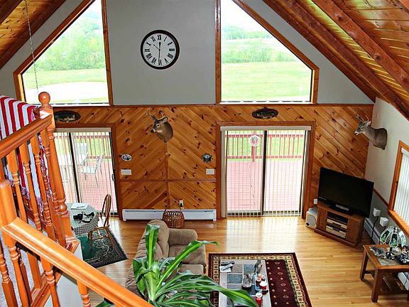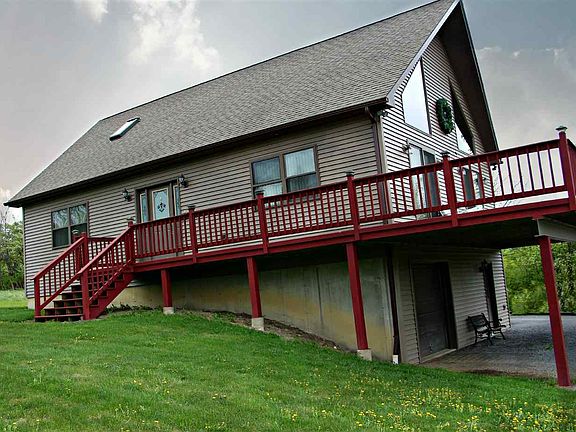 Custom built chalet on 3.24 acres. 3 bedroom, open floor plan, & cathedral ceiling. 3 car attached garage, wrap around deck, & pond. Enjoy quiet country setting with picturesque views. This is a must see!