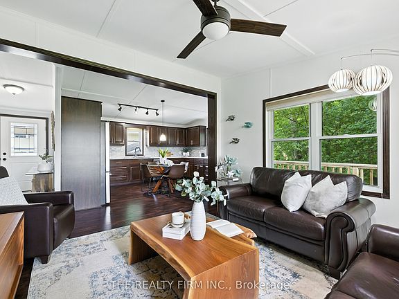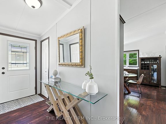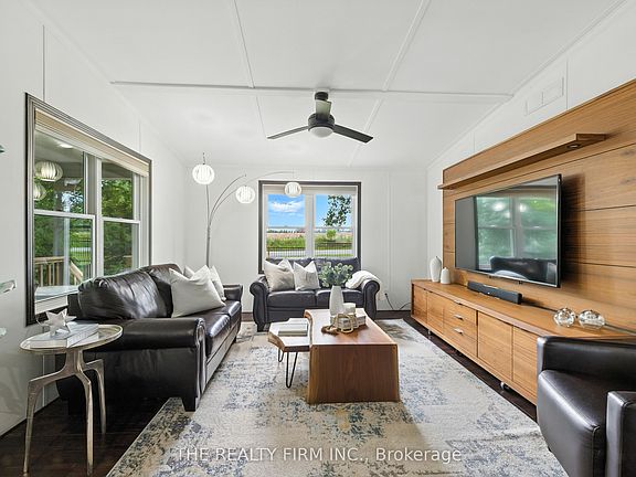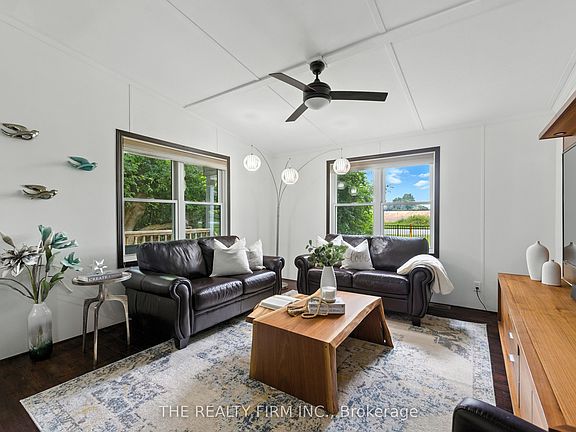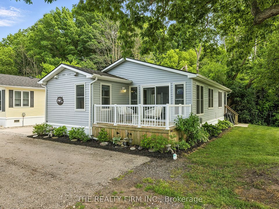 Live the resort lifestyle year-round in Unit #1 at Oriole Park Resort--a rare gem in Komoka just 10 minutes west of London. This vibrant four-season retirement community offers a peaceful, cottage-like setting and this 3-bedroom, 2-bathroom modular home is packed with features that make everyday living feel like a getaway. Inside, enjoy hand-scraped laminate floors, an open-concept living, dining, and kitchen area filled with natural light, plus generous closet space at the entrance. The kitchen features stainless steel appliances, tile backsplash, and ample cabinetry. Off the dining area, step onto a private back deck with patio space and a nearby propane hook-up--perfect for summer BBQs.The main 4-piece bathroom is equipped with built-in storage and a convenient stacked washer/dryer. All bedrooms are bright and spacious, with great closet space. One room functions beautifully as a sunroom, an office or third bedroom--your choice! From there, sliding doors lead to a cozy enclosed deck for even more outdoor enjoyment. The primary suite features vaulted ceilings, generous closet space, and 3-piece ensuite. Enjoy unobstructed outdoor views with a neighbouring lot that will remain vacant--offering extra privacy and serenity. A storage shed adds practical outdoor space for tools and gear and two parking spaces is a bonus! But what truly sets this home apart is the unmatched lifestyle Oriole Park offers: clubhouse amenities like a salon and spa, golf simulator, dog grooming station, fitness centre, pickleball court, event space, library, and a fully licensed bistro/bar with a pool table and darts. Stroll the beautifully landscaped grounds, complete with koi ponds, shuffleboard, an off-leash dog park, saltwater pool, community fire pit and garden, and BBQ areas.If you're ready to downsize without compromise, Unit #1 is your ticket to affordable, stylish, and social living in one of the regions most unique communities.