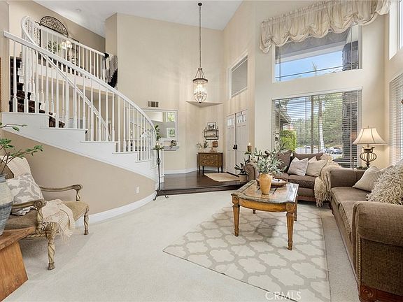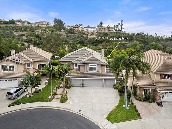 Nestled within a secure gated community, this two-story cul-de-sac home exudes luxury and comfort at every turn. With five spacious bedrooms, this home offers ample space for family and guests. As you approach, you are greeted by pristine landscaping and a welcoming entry. The abundance of windows throughout the home ensures that natural light floods every corner, creating an open and inviting atmosphere. The heart of this home is the kitchen boasting granite countertops, center island, and plenty of cabinet space. The kitchen seamlessly connects to the family room, where a cozy fireplace beckons on cooler evenings. From here, you can access a lovely side patio, perfect for al fresco dining or enjoying a morning coffee. On the main level, a versatile bedroom with a full bath offers convenience and flexibility for various needs, whether it be a home office, home gym, or guest suite. Ascending the staircase to the upper level, you'll discover the spacious primary suite. It features soaring ceilings and a custom wood wall accent that adds character and warmth to the space. Large windows provide serene views and ample natural light. The primary bathroom is a retreat in itself, featuring dual vanities, deep soaking tub, separate shower, and a generous organized walk-in closet. Three additional bedrooms on the upper level offer plenty of space with one of these bedrooms boasting a private bath, while the other two bedrooms share a Jack and Jill dual vanity bathroom. Step outside into the backyard, and you will discover the tropical oasis that awaits. Stamped concrete patio accents the area surrounded by lush landscaping that creates a private and serene ambiance. The raised dining pavilion offers an ideal spot for outdoor meals, while a soothing fountain adds a touch of tranquility. Prepare to be impressed by the myriad of amenities offered within the Canyon Crest community; numerous refreshing pools, tennis and pickleball court, generous grassy lawn, fun tot lot playground, BBQ’s, picnic areas, incredibly equipped gym, billiard room and so much more. Lake Mission Viejo membership rights include boating, kayaking, fishing, evening concerts, movie nights and so much more. As a bonus, this tremendous home is tucked deep within the single loaded street. Make it yours today!