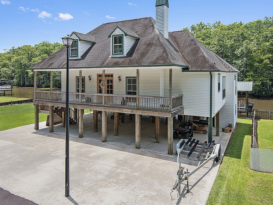 Wonderful river home with 75' water frontage on Chinquapin Canal which located off the Blind River. This property is a drive under and sits on two lots with decked bulkhead, boat slip & lift & outstanding views. This 1850 living area home with three bedroom and three full baths has beautiful views, a large kitchen and living room. This is a great home/camp for entertaining. Home has access to Lake Maurepas, Diversion Canal or Lake Pontchartrain!!
