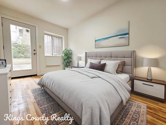 This stunning 2,000-square-foot, fully renovated three -bed, three-bath duplex offers a spacious layout, private backyard, home office, wet bar & in-unit laundry. Features: -- Expansive, open floor plan -- Well-appointed kitchen --Spacious living room --Three full bathrooms --Three bedrooms --Large home office /guest room --Hardwood floors throughout --Washer and dryer --Wet bar --Wine cooler --Private backyard --Stainless steel appliances --Very sunny --Rainfall shower heads Located near Brooklyn tea, Doc's Cake Shop, Good Ole Days Diner, Therapy Wine Bar, Peaches, Saraghina Pizzeria Frog, Nagle's Bagels the list goes on & on! Short walk to the J/Z subway lines and numerous bus routes. -- Easy application process -- 40x rent | 700+ Credit Score -- Guarantors are accepted Pets Allowed