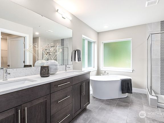 Bellflower Court is centrally located, tucked back off the main road, this neighborhood offers a lovely place to call home. Shopping, dining & entertainment are w/in minutes of nearby Mill Creek Town Center & Alderwood Mall. The Kimball on homesite 13 offers a main floor bedroom & bath w/ shower, open concept great room & stunning chef's kitchen. Upstairs, a bonus loft + tech niche, luxury primary suite w/ free standing tub & sizeable walk-in closet, 3 bedrooms & additional full baths. At Bellflower Court you'll find the latest in contemporary finishes, including all quartz counters, modern open rail & much more! Finishes will vary from photos. Buyers must register their broker on site at their first visit.