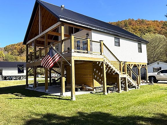 Best of both worlds-on the Greenbrier River and downtown Marlinton. Beautiful newly constructed 3 BR, 2 bath 1.5 story cottage features an open floor plan, river views, natural wood throughout, woodburning fireplace, kitchen with granite countertops, 17X28 loft bedroom with half bath, first floor with 2 BR's and full bath, large laundry room, LVP floors, and 2 Mini splits for heat/AC. Bring the outside in with 2 sets of French doors leading to the covered deck. Lower patio is perfect entertainment area with big screen TV. Exterior is board and batten siding with a black metal roof and handsome matching handrail. 14 X14 storage underneath. 1400 sq ft of pure fun, quality construction and great location for hiking and biking on Greenbrier River Trail. Inviting residence or vacation rental Additional information for 228 1st Ave, Marlinton, WV 24954