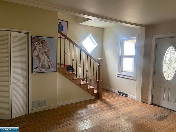 This Nashwauk home has very new features, and very old features. It has a vey nice frone porch for summer nights, and a one stall older garage in the back. The home has a large Living room and a older style kitchen, one bedroom and primary bath on main. The upper level has two bedrooms and a full bath. Much has been done on this home, but it still has work to be done. The home has all newer siding, windows. Grand new staircase to the second level and new flooring upstairs. The home will not pass FHA VA or first time home owner type loans .