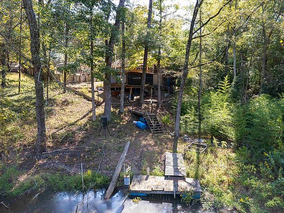 A fisherman's/fixer-upper opportunity. Consists of a main 680 sf structure with a large kitchen/dining area with a breakfast bar and a master bedroom with walk-in closet and master bath with a jetted tub and shower. There is an additional 21'x12' bonus room off of the living area. The property also includes an older RV with attached room with 2 beds, couch, kitchen and bath. There is an additional 25'x20' storage building with electricity, a 10'x13' wash house with double sink. The property also includes partial ownership of a pond with a fishing pier with a 15'x15' shed overlooking it. Good fishing and winter duck habitat. The property consists of 6 lots in a subdivision with access to a pool and playground and boat ramp on beautify Lake Cypress Springs. Very private and lots of wildlife. Schedule your private showing today.