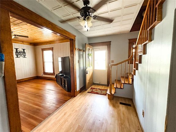 Charming 4 bedroom, 2 bath home with character and space. Step inside and be greeted with hardwood floors, gorgeous trim throughout the home and built-in's in the living room and dining room. The main floor offers 2 bedrooms connected by a Jack-and-Jill bathroom, while the upstairs offers 2 additional bedrooms and a full bath. Enjoy outdoor living on a large deck overlooking the spacious backyard, perfect for relaxing. This property also includes two detached garages and plenty of parking space, providing room for vehicles, storage, or hobbies. Don't miss the chance to own this home full of possibilities.
