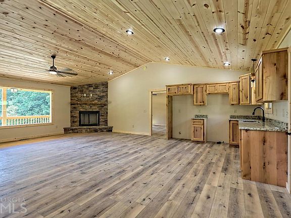 Captivating and Rustic Brand-New completely finished home on a gorgeous level lot in a desirable area, this 1400 sqft 2BR/2BA ranch delights with a cabin-inspired exterior, 12 chink and groove siding, and a 6 X 12 rocking-chair front porch perfect for enjoying all four seasons. Fashioned for entertaining the open concept interior features vaulted wood ceilings, living room w/stacked stone gas fireplace, and a dazzling kitchen with granite countertops and custom-made cabinetry. Seller will provide a $3,000 appliance allowance. Both bedrooms have direct access to the 8 X 50 back porch. The master holds an en suite bathroom with granite countertops and custom cabinetry along with a massive closet that is even better in person.