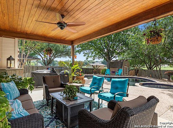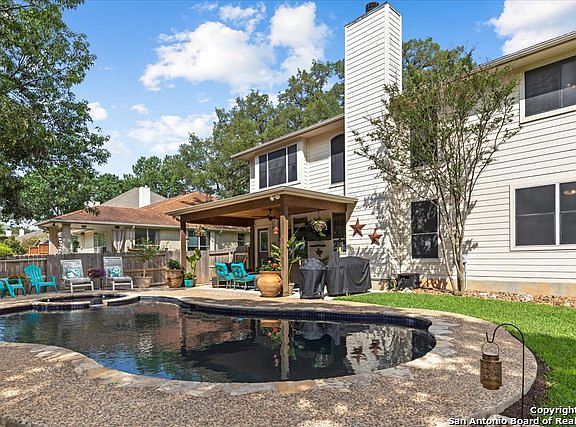 Pool, POOL, pool! Thanks for viewing this over 2600 sq ft home on a private backyard GREENBELT lot in the popular Deer Creek subdivision in Cibolo! 4 Bedrooms 3 FULL Bath with FIREPLACE, secondary bedroom DOWNSTAIRS & full bathroom downstairs for your home office or extended family situation. Huge LOFT, COVERED Back Patio (12x20') & backyard BBQ Patio Slab extension. But you came to see the POOL! In spots, pool is about 30' long and 18' wide, and 6' deep at its deepest point. If you enjoy your backyard time, come on in, the water is fine in this in ground POOL and plenty of space to grill & chill.......this home is for you! ROOF reshingled 2018. Be sure to check out the 3D Tour 360 views. Schedule a private tour today! This home has an inground POOL! Come visit us at 228 Autumn Fall & see why Cibolo is a great place to call home.
