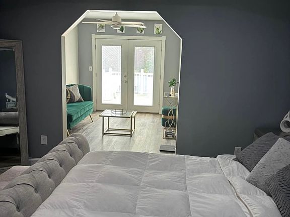 Luxury Home fully furnished home for rent, featuring a spacious 2-car garage and two inviting living areas, each adorned with stoned fireplaces, setting the stage for cozy gatherings. Entertain effortlessly in the expansive dining room and gourmet kitchen, equipped with top-of-the-line stainless steel appliances including a dishwasher, double oven, wine fridge, and gas top stove. Retreat to the three bedrooms and two baths, including a luxurious Master Suite boasting a private retreat area and balcony overlooking the serene pool, complemented by two walk-in closets. Indulge in the spa-like atmosphere of the Master bath, complete with a floating tub and separate shower. The backyard oasis awaits, featuring a spacious deck, sparkling pool, and white vinyl fenced-in yard, offering a private sanctuary for outdoor relaxation and entertainment.