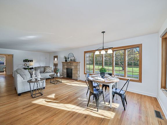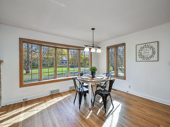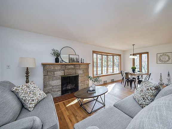 This RANCH home offers the perfect blend of comfort and convenience, just a short stroll from the vibrant shops and restaurants of Geneva's famed 3rd Street. Inside, the living room and dining area welcome you with gleaming hardwood floors & a stone surround fireplace while the kitchen, complete with a cozy breakfast bar, flows seamlessly into the dining room, which opens to a stunning backyard through sliding doors. Your den offers built in shelving & its own entrance point. The spacious primary suite is a true retreat, featuring vaulted ceilings, dual walk-in closets, a dedicated dressing room with two skylights, built in shelving & private backyard access. The luxurious primary bath boasts heated floors set for morning & evening comfort, a skylight, vaulted ceilings, double sinks, a jetted tub and a walk-in shower. Additional bedrooms (one with built in shelving) share a convenient hall bath, perfect for family or guests. Downstairs, the partially finished basement includes a large workshop area, a recreation room & built in storage, providing ample space for hobbies and relaxation. The attached, heated two-car garage includes built in shelving and a unique green room with skylights & shelving, ideal for gardening enthusiasts. Set on an expansive lot filled with mature trees, this home offers both privacy and plenty of outdoor space to enjoy.