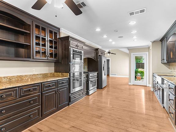 Charming one-story ranch in the sought-after Canyon Creek and Prairie Creek area of Richardson! This move-in ready home features solid hardwood floors throughout most of the home and an open, inviting layout. The chefs kitchen boasts granite countertops, a gas cooktop, built-in oven, microwave, dishwasher, and abundant cabinet space. A butlers pantry with a prep sink is conveniently located just off the dining area. Enjoy a cozy outdoor patio right off the kitchen and a spacious living room with built-in bookcases and a fireplace. A versatile game room or den provides flexible living space to suit your needs. Updated bathrooms throughout add modern appeal. The fourth bedroom, previously used as a home office, can easily be converted back with the addition of a sliding barn door if desired. The private backyard features a board-on-board fence, and the home includes a two-car garage with alley access. Ideally located near UTD, Canyon Creek Country Club, Prairie Creek Park, shopping, dining, and zoned to Plano ISD. A perfect blend of comfort, style, and location! Refrigerator, washer, and dryer are included for tenant use 2025-10-30