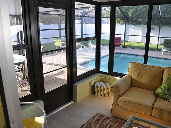 If you're looking for an UPGRADED 3 bedroom, 2 bath home with a fantastic pool - this home is the one! Prepare to be impressed with all this home has to offer. NUMEROUS upgrades in the last 5 years. Durable and beautiful travertine flooring throughout the home. Bonus - spacious Florida Room with Lexan sliding windows with heat & A/C unit - not included in square footage. Renovated kitchen with granite counters, new faucet and Bosch dishwasher. Bathroom upgrades include cabinets & counters, light fixtures, faucets and comfort height toilets. Other upgrades include: roof replacement, gutters, electrical box, high-efficiency A/C, garage door with belt drive opener, hurricane-rated front door and custom window shades. You'll enjoy endless days spent relaxing by the pool and expanded pool deck. The pool has been resurfaced with Pebble Tec and has paver decking, Hayward pool heater and hurricane rated enclosure. You'll have peace of mind knowing the entire house has been re-plumbed with PVC pipes and a newly relined sewer pipe. Some other features include: 2 car garage with circular driveway and fully fenced yard (with 6' vinyl fencing). No HOA fees and not in a flood zone! Great central location - close to beaches, schools, shops, restaurants, medical facilities and easy access to I-75 and area airports. Video tour, complete list of upgrades and additional pictures available upon request.
