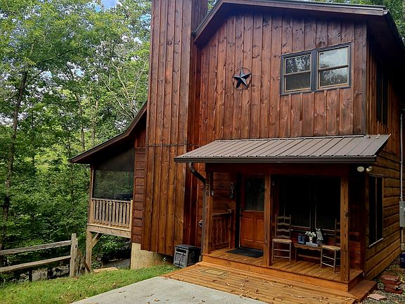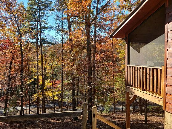 Motivated! Unbeatable location just moments from the community gate. Turn-key Cabin with spacious bedrooms that comfortably accommodate king-sized beds and a set of bunks in the loft. The home features soaring cathedral ceilings, a stone fireplace with gas logs, and a durable metal roof. This 2-bedroom, with a 3rd Loft bedroom, has gorgeous wood floors that flow throughout the cabin! The generously sized kitchen is equipped with stainless steel appliances, elegant granite countertops, and a breakfast bar perfect for entertaining. Rustic finishes enhance the inviting atmosphere. Take a dip in the relaxing hot tub while listening to the soothing sounds of the river and plenty of wildlife-watching opportunities. There is a private fire pit and abundant amenities, including river access, tennis courts, fitness center, duck pond, walking trails, multiple pools, and more! This private cabin is located just minutes from downtown Ellijay. Enjoy the perfect blend of seclusion and convenience, making this your ideal mountain getaway!