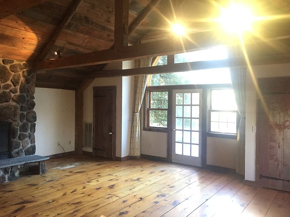 Large one bedroom with huge vaulted ceiling and working stone fireplace. Bedroom has gigantic wall sized window that looks down the hill into the woods. Washer/dryer in unit. Tons of closets... ample storage. Central AC. Tenant pays their own electric and heating. This apartment is over a three car garage and part of a 5 acre private property that borders a wildlife sanctuary with easily accessible hiking. Very close to Mount Kisco train station; easy commute to New York City and surrounding Westchester burbs. Tenant gets use of one parking spot in the garage. We are open to short or long term renters. $50 credit fee, first months rent + 1 month's rent security. Tenant pays for private trash pick up, electric and heating. $50 credit check.