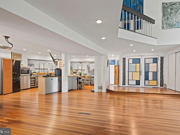 Architectural Elegance Meets Artistic Inspiration Discover a rare retreat where architectural innovation, inspired by Frank Lloyd Wright, blends seamlessly with modern luxury and artistic vision. This custom-designed mid-century residence, crafted by architect Walter J. Magill, offers an extraordinary fusion of design sophistication, creative energy, and purposeful functionality. Today, the home serves as much more than a residence. It is a vibrant sanctuary for internationally acclaimed artists and creative communities from New York City and Philadelphia. Functioning as a home, event venue, professional art gallery, and broadcast-quality recording studio, the property provides a dynamic and inspiring environment. The expansive wall space is ideal for curators, collectors, and visual artists to showcase large-scale works, making this a truly expressive and versatile setting. From the moment you enter, you’re immersed in thoughtful architectural detailing: a sunken living room with soaring 20-foot ceilings, two beveled fireplace walls that dramatize vertical space, graceful archways, a sculptural rounded centerpiece column, and custom curved walls upstairs that evoke the home’s fluid, almost liquid architectural flow. These elements are grounded by hand-selected Brazilian teak wood floors, prized for their resilience and beauty, and framed by exposed high-contrast ceiling beams for an added artistic edge. The gourmet kitchen is equally impressive—both a culinary workspace and a performance-ready stage. It’s outfitted with professional-grade appliances, including a Thermador microwave, a Dacor stove, and a professional series KitchenAid double oven and dishwasher. The kitchen has hosted art auctions, private concerts, and notable fundraising chef-table experiences. The Samsung's interchangeable color-paneled fridge (extra sets included), paired with Murano glass handles from a Venetian artisan collection, and remote-controlled kitchen blinds to fine-tune natural light and privacy. The open-concept main level is filled with natural light, enhanced by top-of-the-line Bali blinds with versatile top-down/bottom-up functionality. Upstairs, you’ll find four spacious bedrooms plus a dedicated laundry. The primary bedroom offers exceptional storage with two large walk-in closets and an additional floor-to-ceiling 8-foot-long mirrored closet. Two of the other bedrooms also feature mirrored closet doors, expanding light and visual space. Other interior highlights include three modern gas fireplaces, a refinished yellow whirlpool tub designed for multi-person use, electronic Mitsubishi split systems in all bedrooms, the kitchen/dining area, and the music studio, as well as a two-zone central HVAC system and full wall insulation for low utility costs and customizable comfort. The walk-out basement is a creative haven like no other, featuring a fully insulated, broadcast-quality music recording studio, a professional art gallery with museum-grade lighting, and a private guest or in-law suite with a full kitchen, bath, and living space. It includes two separate entrances and access via a circular driveway that accommodates up to eight cars. Outdoor living is equally versatile, with two thoughtfully designed patios. A cozy elevated patio off the living room is perfect for quiet mornings or evening unwinding, while a spacious garden-level patio is ideal for cookouts, gatherings, and open-air dining. Complemented by Italian-inspired lawn lighting on a timer, the exterior ambiance transitions beautifully into evening. The driveway was repaved in 2023, and the property also includes a substantial barn with endless potential—as a studio, gallery, performance space, or workshop. The prime location is just a 10-minute walk to the train station, with only two stops to Center City, a 10-minute drive to Trader Joe’s, Whole Foods, and Target and only a 5-minute walk to a newly developed creekside walking and biking trail.
