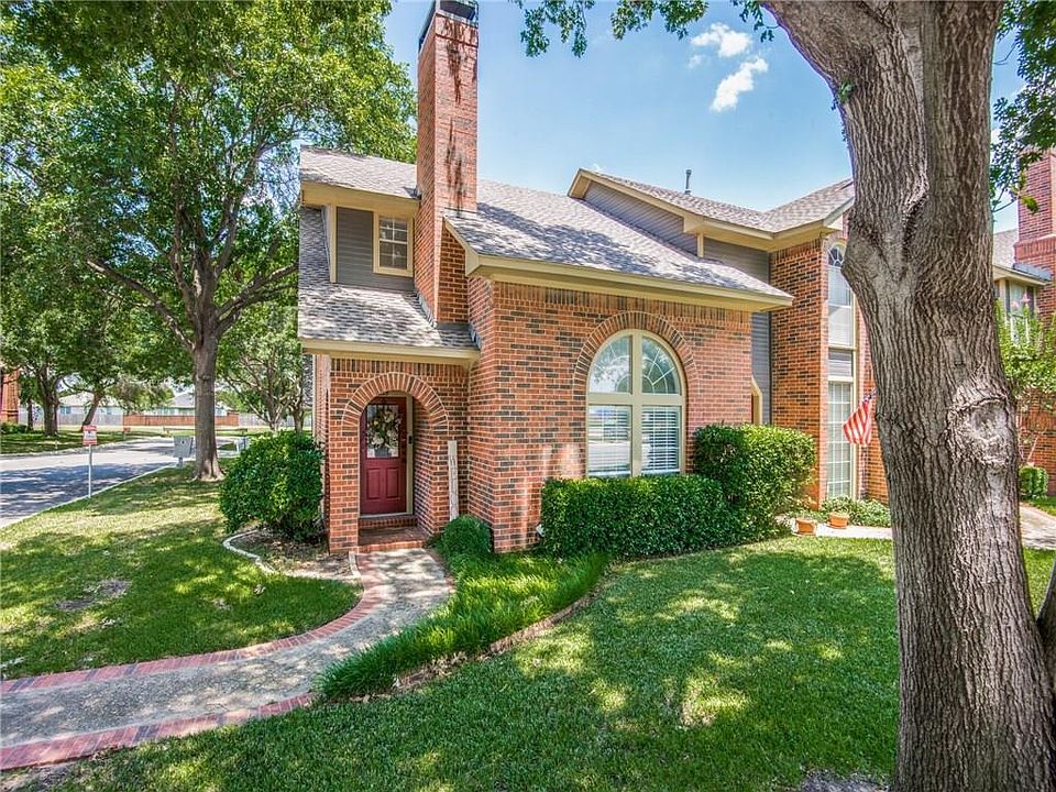 Charming townhome with 2 living areas, one as large upstairs loft that could easily be made into second living area. Updated paint colors throughout, updated luxury vinyl plank wood look floors and granite countertops, updated chandelier fixture in dining area and updated draperies. Vaulted ceiling in living room. Stately floor to ceiling brick fire place with gas logs, wet bar and finished out garage with storage and private entry to back door. Great back yard patio with outdoor string lights for your private cookouts or outdoor dinners. Corner unit with privacy and large shade trees across from Evers Park and walking distance to the pool for townhome owners only. Side street with additional guest parking.