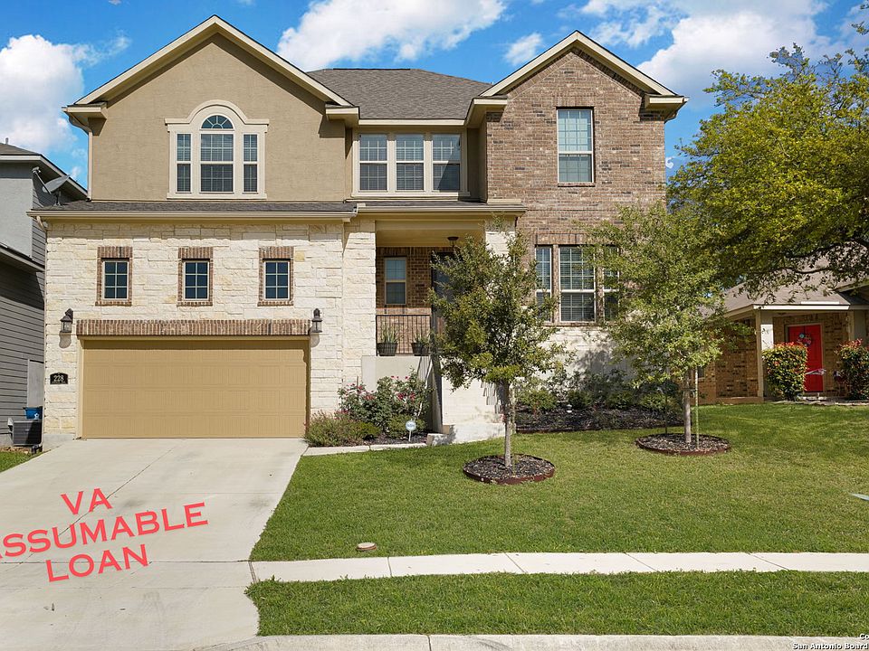 VA ASSUMABLE LOAN AVAILABLE! Step inside this upgraded Rialto-built 2-story home in desirable Buffalo Crossing, ideally located just minutes from JBSA-Randolph, I-35, SCUCISD schools, and the new H-E-B. Featuring 4 spacious bedrooms, 3 full baths, a dedicated office, and a large upstairs game room, this home offers the flexibility and space today's buyers need. The bright, open-concept kitchen includes granite countertops, abundant storage, and a full appliance package that conveys-an immediate value for buyers. Downstairs, a private guest suite with a full bath is perfect for multigenerational living or visiting family. Upstairs, the oversized game room makes a great secondary living space, media area, or play zone. Step outside to a backyard designed for both relaxation and play. Enjoy your evenings on the covered patio, and take advantage of the included collapsible sports net-ideal for baseball, softball, soccer, or football training sessions. Additional upgrades include an installed Tesla Charger in the garage, making EV ownership convenient and maximizing future resale appeal. Buffalo Crossing offers a true community feel with parks, shopping, dining, and fast access to San Antonio and New Braunfels. Move-in ready, appliance-equipped, EV-friendly, and loaded with lifestyle upgrades-this home delivers exceptional value. Come see it today!