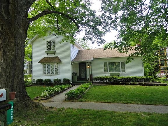 Welcome to 228 E Second Street! A Charming Turn of the Century Home on Corner Lot of Tree Lined Street that offers 1870 sq ft of living space, 3 bedrooms, 2 baths. Front Entry has lead walk lined with planters, to covered porch. Open the front door and enter the large living room with wood burning fireplace and coat closet. Continue through double pocket doors to roomy dining room with knotty wood paneling that connects to kitchen with center island and plenty of nice cabinets. Take a left to the spacious screened in porch with slatted windows. Adjacent to the porch is a double stall garage. OR go left front the entry to the master with hardwood floors and great master bath boasting a jetted tub and walk in closet. Another 2 steps forward and you are at the door to the stairway which takes you up to the other two bedrooms. Here you will find more rustic paneling and the second room has a built in bunk bed. There are one of a kind built ins of some sort in almost every room.