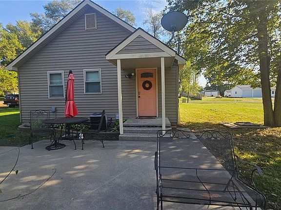 ONE LEVEL LIVING IN THIS ADORABLE HOME WITH SO MUCH CHARACTER. MINUTES FROM SMITHVILLE LAKE. Nice covered front porch invites you into a charming living room and dining room with custom woodwork, columns and a chandelier for that touch of refinement. A completely remodeled kitchen with New flooring, countertops, faucet and refrigerator. Dining room boasts of new paint and flooring. Bedroom has a new headboard. Nice laundry/Mud room. Anderson energy efficient double hung insulated windows, vinyl siding, timberline style roof. Keyless entry installed on back door and garage door. Maintained HVAC. New outdoor spigot with inside shutoff. Outdoor outlet installed for outside lighting. Perennials were planted. Dead tree removed.