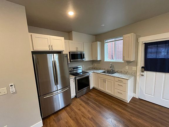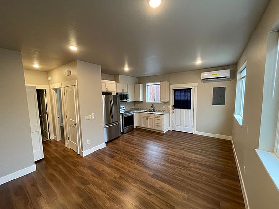Beautifully remodeled ground floor apartment right off the hip-strip and a few blocks from the University of Montana campus. It's a 1 bedroom, 1 bath unit with stainless steel appliances, laminate wood floors throughout, in-unit washer and dryer, and A/C. Has one off street parking spot with access from the alley, and a storage shed.