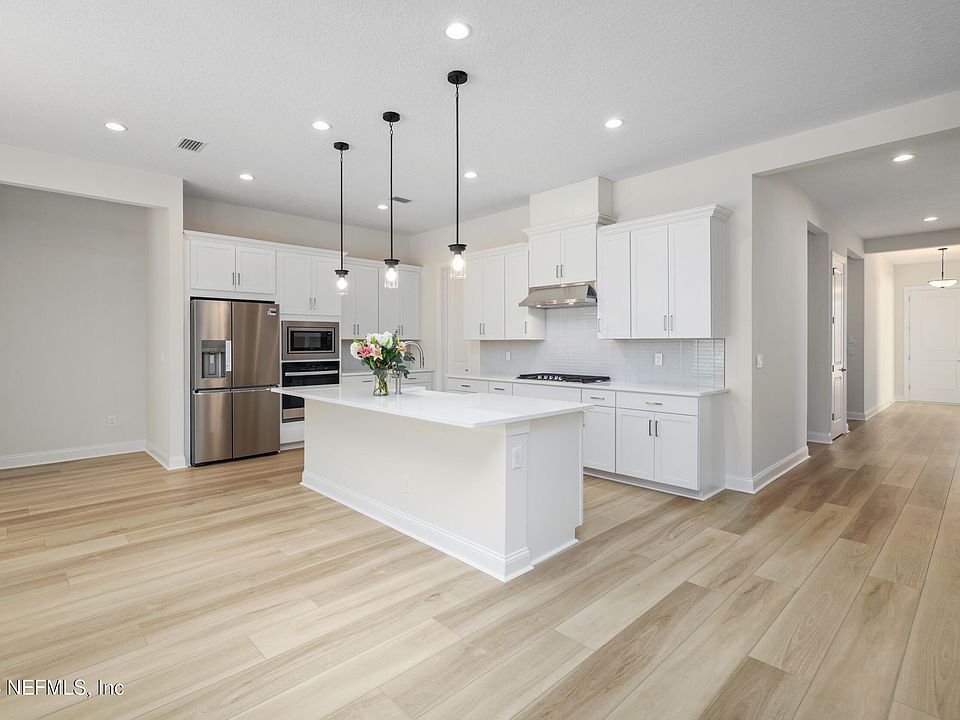 The home's gourmet kitchen features quartz countertops, walk-in pantry, porcelain farmhouse style sink, and stainless steel appliances, perfect for entertaining or everyday meals. You will love the convenience of built-in drawer inserts in the bottom cabinets, designed to maximize storage and keep everything neatly in its place.