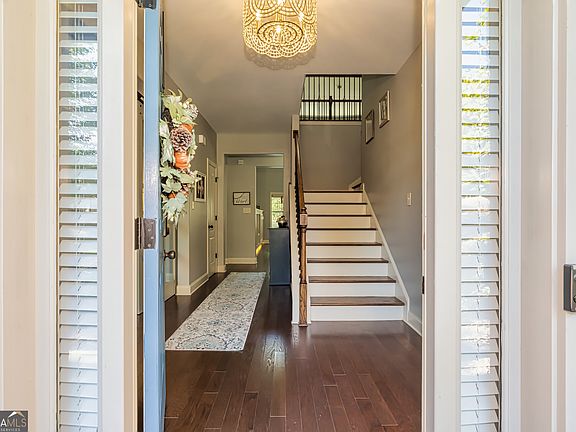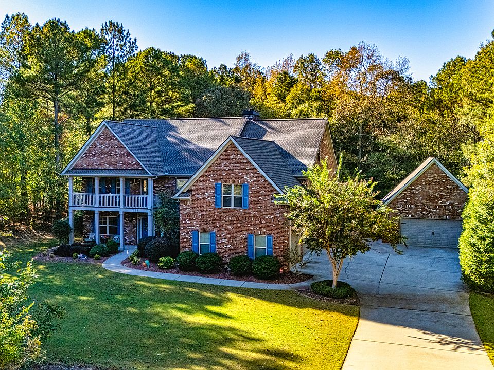 Welcome to this stunning all-brick home perfectly situated on 1.97 wooded and private acres, complete with a sparkling saltwater pool and plenty of space to live, work, and play! Located in a top-rated school district, this home greets you with an inviting covered front porch leading into a bright foyer. Inside, you'll find a formal dining room with a coffered ceiling, and an office or sitting area accented by built-in bookshelves. The spacious living room features a wall of windows, built-in cabinetry, and a cozy fireplace, flowing seamlessly into the chef's kitchen, complete with a large island with seating, double ovens, a gas cooktop with pot filler, stylish backsplash, and an airy breakfast room overlooking the backyard oasis. A guest bedroom and full bath on the main level provide comfort and convenience. Upstairs, the primary suite impresses with a sitting area, trey ceiling, and a spa-like bath featuring a soaking tub with tiled surround, dual sink vanity, a separate tiled shower, and a huge walk-in closet. The third bedroom includes a private ensuite bath, while bedrooms four and five share a full hallway bath. The third level is an entertainer's dream - a home theatre room, game room with built-in bar, exercise room, and a full bath. Outside, enjoy your private retreat with mature trees, a saltwater pool, covered porch with fireplace, and plenty of room for outdoor living. Conveniently located just minutes from I-85, with easy access to Hartsfield-Jackson Atlanta Airport, Peachtree City, shopping, and Historic Downtown Newnan. Don't wait call today to schedule your private showing!