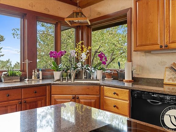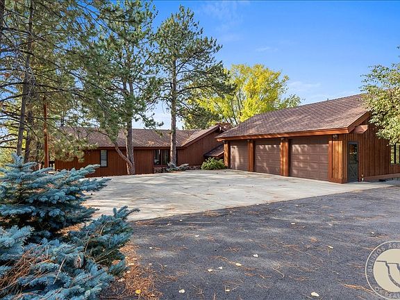 Discover this architecturally stunning home nestled on 13 secluded acres in Emerald Hills. Spanning over 4,000 sq ft, this elegant residence features 5 bedrooms & 3.5 bathrooms. The open living area is a showstopper, with a breathtaking stone fireplace that runs from ceiling to basement, soaring vaulted ceilings and a wall of windows that flood the space with natural light. Step outside onto the expansive deck and enjoy spectacular views of downtown Billings. The landscaped yard is easily accessible from several positions, including the walk-out basement, perfect for outdoor entertaining or relaxing in nature. An oversized attached 3 car garage provides ample storage, complemented by additional parking. Rare for this area is the the private Well, which fills the (2) 2200 gallon cisterns. Meticulously maintained, this home offers a perfect blend of luxury, privacy, & breathtaking scenery.