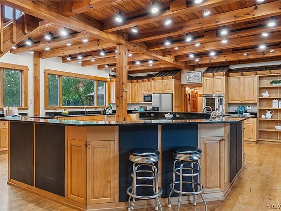 - Beamed Ceilings, Wet Bar, Bookcases, Built-in Features, Bedroom on Main Level, Ceiling Fan(s), Cathedral Ceiling(s), Dining Area, Double Vanity, French Door(s)/Atrium Door(s), Fireplace, Granite Counters, High Ceilings, Kitchen Island, Loft, Main Level Primary, Pantry, Recessed Lighting, Walk-In Closet(s)