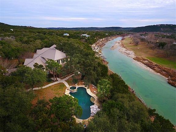 Extraordinary waterfront home with 250' of Blanco River frontage in Wimberley! Custom built on 10.93 acres with incredible Hill Country views. Easily accessible to Austin and San Antonio. This magnificent piece of property is currently being used as income producing rental property and has seen many famous visitors. Some of the special features include a butlers pantry, formal study, gameroom, fitness room off the master, in-ground pool with hot tub, and balconies & decks for enjoying the sunset views!
