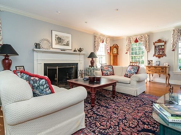 Set back on nearly an acre of remarkable grounds, there is an uncommon elegance and refinement to this beautiful residence. It is situated on a very wide parcel among many much more expensive properties in an outstanding location. Many windows allow natural light to stream into the rooms. The kitchen had been architect-designed and the details and layout remain very impressive to this day. The foyer is especially striking with its grand proportions and sweeping stairway. The exceptionally spacious living room has built-ins and a fireplace, as does the dining room. The den has a charming window seat and a fireplace and opens to a casual sunroom that leads to the patio. The second story has a main ensuite bedroom with the fourth fireplace, three more bedrooms and two additional baths. You could make improvements as you choose and enjoy a home that is both timeless and classic.