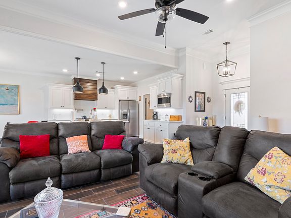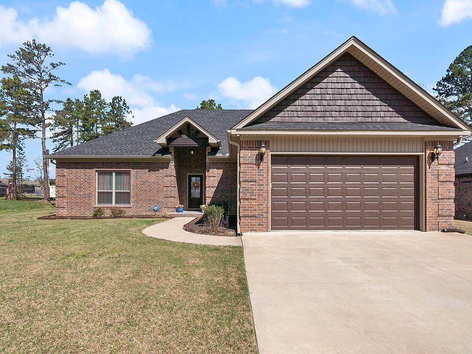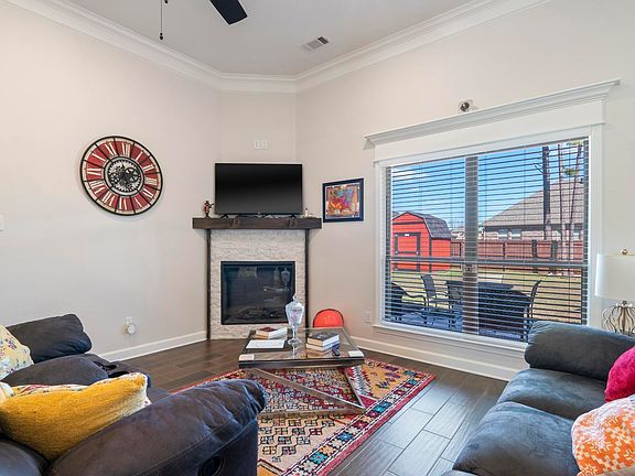 Welcome to this stunning new listing! This beautiful home boasts an all electric interior, including an electric fireplace for cozy nights. The kitchen is a chef's dream with granite counter tops, an island, a pot filler and space for dining. This home has a split floor plan for optimal privacy. The primary bathroom features 2 vanities. a large corner tub, a wonderful separate shower, private toilet area and a walk in closet. You will find beautiful wood look tile flooring throughout the home. The living area is elegantly designed with tall ceilings, creating a spacious and inviting atmosphere. Additional highlights include a separate laundry room with a food pantry and a security system for peace of mind. The backyard of this property is thoughtfully designed for privacy and relaxation, featuring a privacy fence, a covered back porch and a patio area, perfect for outdoor entertainment and enjoyment. Completing this outdoor area is an outbuilding, providing extra storage space. Schedule your tour today!