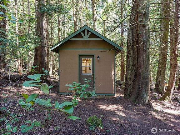 CLOSE TO THE FERRY AND NOT FAR FROM THE VILLAGE sits this peaceful lot. Listen to the birds sing and settle in among the mature trees. Tiny camping cabin with pine ceiling above the loft. Outhouse sits atop your installed 3 bedroom gravity septic system. Community water, power and Rockisland fiber at the road. This lot is ready for you to build your Lopez home or just camp until you decide.