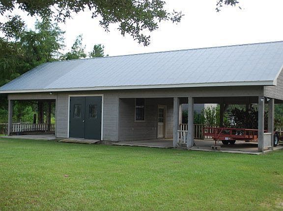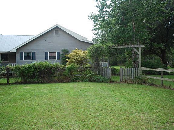 Country living within minutes of everything. Spacious 4 bedroom 3 bath home on 2 fenced acres with front and back porches. Large family room with beautiful wood ceilings,den/library with wood burning fireplace,large porch in front and patio off master bedroom. Detached 3 car carport with workshop and additional 2 story building that was used as a playhouse. All this and a stocked pond.