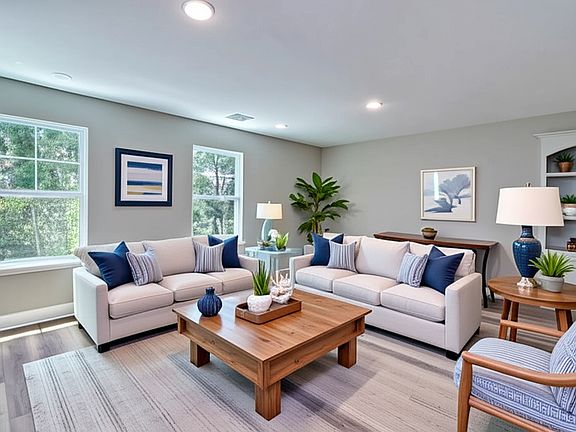Located on the scenic Charwood Golf Club, just 9 miles from downtown Columbia, this home sits on one of the best golf course lots with beautiful views. The Blythewood plan offers 5 bedrooms, a loft, and 3 full baths perfect for families or entertaining. The open-concept main level features a modern kitchen with granite countertops, shaker cabinets, tile backsplash, and luxury vinyl plank flooring. A guest bedroom and full bath on the main floor add convenience. Upstairs, the owner's suite includes dual vanities, soaking tub, separate shower, and a walk-in closet, while three additional bedrooms share a full bath. The laundry is also upstairs. A smart home package with video doorbell, smart thermostat, smart lock, media panel, and hub is included. An attached two-car garage provides ample storage. Photos are virtually staged!
