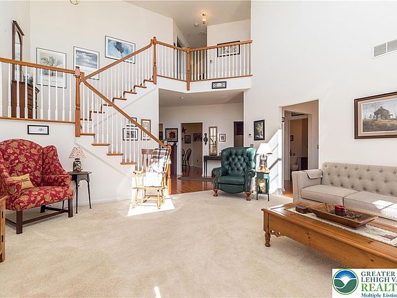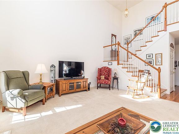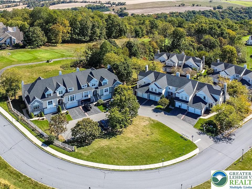 OPEN HOUSE: Saturday, Oct. 11 from 11:30 to 2 Welcome to 228 Merion Lane, where panoramic valley and golf course views set the tone for relaxed, elevated living. Nestled in the highly desirable Country Classics at Morgan Hill community, this pristine 3-bedroom, 2.5-bath townhome offers a refined blend of comfort, beauty, and convenience. Inside, natural light fills the spacious family room, featuring a gas fireplace and stunning views—perfect for cozy evenings or easy entertaining. The well-appointed kitchen boasts 42” cabinetry, gas cooking, a large pantry, kitchen island, newer backsplash, and under-cabinet lighting, granite counters—all designed for both everyday enjoyment and stylish hosting. The formal dining room transitions effortlessly to the newer maintenance-free deck, complete with an awning where you can savor breathtaking sunset views over the Lehigh Valley and golf course. Upstairs, the primary suite impresses with two walk-in closets and a grand bath, while two additional generous bedrooms share a beautifully appointed Jack-and-Jill bath. A convenient second-floor laundry adds ease to everyday living. The walk-out basement offers full daylight and a rough-in for a future bath—ready for your finishing touch, whether a fitness studio, media room, or guest retreat.
