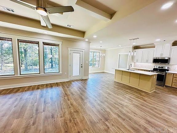 Welcome home to peaceful living in this spacious 4-bedroom, 2-bath beautifully built new-construction home! Nestled in a quiet neighborhood, this home features a smart split-floor plan that gives the master suite ultimate privacy. The master bathroom includes two large walk-in closets and a stunning spa-like bath with a freestanding soaker tub and a walk-in shower. The open-concept layout connects the large living area, kitchen, and dining space—perfect for family gatherings and entertaining. A sleek electric fireplace adds warmth and modern charm to the living room, while the kitchen shines with a breakfast bar, ample granite slab counter tops, and a large, walk-in pantry. You’ll also love the convenient separate laundry room and plenty of storage throughout. Step outside to the covered patio, ideal for relaxing evenings or weekend cookouts. Enjoy easy access to I-57 and downtown Beebe for shopping, dining, and entertainment. Modern comfort, space, and style—all in one perfect package!