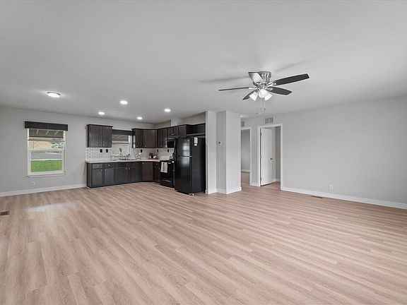 MLS# 284167 This affordable and move-in ready manufactured home sits on a spacious .17-acre lot and offers a thoughtful split-bedroom layout for added privacy. Enjoy the open concept living area with recently updated LVP flooring and new trim throughout. The primary suite features a tile walk-in shower, dual sinks, and a large walk-in closet. Step outside to enjoy the oversized covered patio, perfect for relaxing or entertaining. The yard is equipped with underground sprinklers, a cement slab with curbing, and a storage shed for extra storage. A perfect blend of comfort, space, and value—don’t miss it!