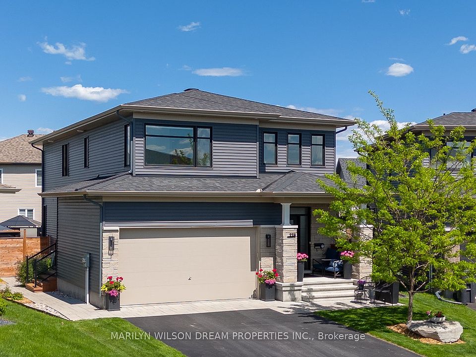 The perfect family home in Rockland, a growing community just 20 minutes from Orléans, where contemporary design, practical living, and a backyard oasis come together. With over $70,000 in custom builder upgrades and high-end finishes throughout, this exceptional property sits on a rare, expansive pie-shaped lot and offers 2,530 square feet of finished living space. The open-concept main floor features a bright, modern kitchen with quartz countertops, a farmhouse sink, upgraded appliances, and large island with seating. The dining area opens directly to the backyard through patio doors, while the family room with a cozy gas fireplace is ideal for gathering. A dedicated main-floor office with its own entrance adds flexibility for working from home or hosting clients. Upstairs, the spacious primary suite includes a dream custom walk-in closet and spa-like 4-piece ensuite. Three additional bedrooms and a full bathroom complete the upper level. The backyard is truly an entertainer's dream. Fully fenced for privacy, it features a heated saltwater pool, a custom cabana with bar and TV, a pool house, and beautifully landscaped gardens with custom privacy screens all designed to create your own private retreat. This home offers the perfect balance of modern comfort, functional living, and resort-style outdoor space all in a vibrant, family-friendly community experiencing exciting growth. The lower level is already drywalled with electrical and a 3-piece rough-in, awaiting your finishing touches. Dont miss your chance to own this outstanding property.