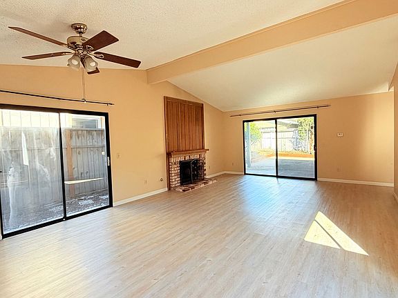 The home features a spacious yard and atrium, perfect enjoying the California sunshine. A two-car garage provides ample space for parking and additional storage.