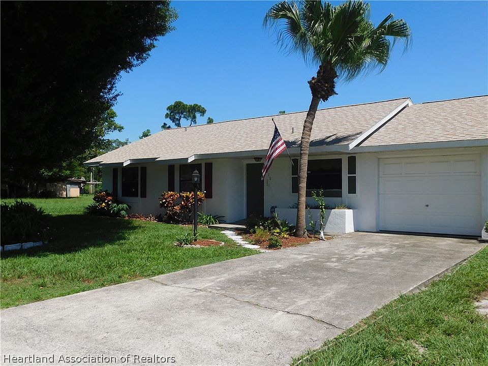 This is a nice one owner home ready for your touches! The eat in kitchen is spacious and bright. The living area has high ceilings, and there is a fully enclosed bonus room/den off the living area. Good size dining area, two bedrooms, and two full baths. One car garage. New Roof 2022!! Pretty yard with large shade tree, and a Starfruit Tree in the backyard! These are great for jam & refreshing drink! Home is on a very quiet street, just off Sun N Lakes Blvd., very close to the community park/clubhouse/boat ramp on Grassy Lake. Just a few minutes to shopping, schools, churches and charming Town of Lake Placid. Nice starter or investment property!