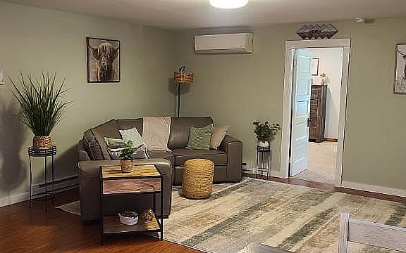 Great space that is newly furnished. Front apartment , with only 2 units in storage building. Super comfortable space for single tenant with futon in small second bedroom for temporary sleeping needs. Utilities included. Snow plowing and trash included. Plenty of parking space. Landlord lives local. Very inviting space. Please see Furnished Finders listing. 3 months minimum rent.