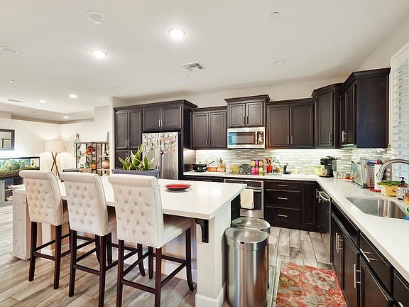 Built in 2017 this Rejuvenate model home in California's Delta Region has over 116k in upgrades. Features include attractive tile plank flooring in the main living areas and baths with beautiful vinyl plank flooring in the beds, espresso-stained cabinetry and plantation shutters throughout, den with patterned glass French doors, a flex room, and huge laundry with extra cabinetry and utility sink. The kitchen boasts the premium gourmet upgrade with soft-close cabinets and drawers, quartz countertops with stylish full tile backsplash, and GE stainless appliances. Both baths feature engineered marble counters and master shower surround, rectangular undermount sinks, and the master closet has a laundry access door. Relax outdoors on the huge fully fenced covered patio with gated access from both sides in a lush private setting. Includes built-in fire suppression system and extra garage storage cabinetry. This beautiful home is located near the community's Serenity Park. Trilogy is a 55+ community with numerous clubs and activies. Enjoy the indoor and outdoor pools, tennis and pickleball courts, Bocce and so much more. Solar lease is prepaid until 2037.