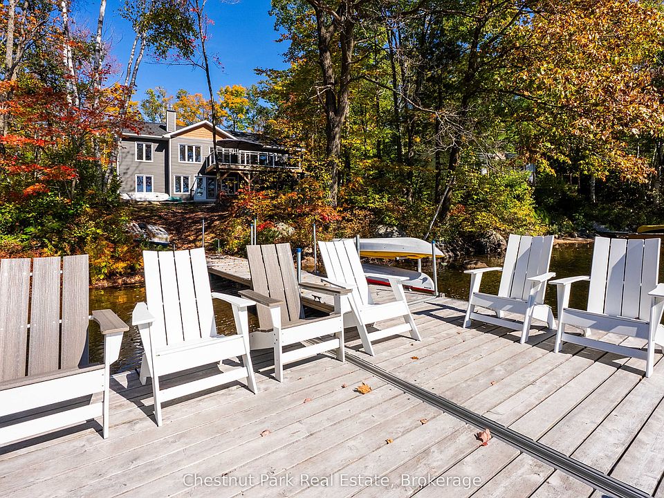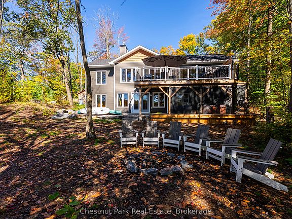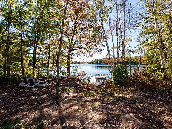 All Day Sun on Stewart Lake! Welcome to your year-round Muskoka retreat, built in 2022 and thoughtfully designed for modern comfort and relaxed cottage living. This stunning 5-bedroom, 3-bathroom home offers an ideal layout for families and guests, with 3 bedrooms on the main floor (including a private ensuite) and 2 additional bedrooms in the walkout lower level. Soaring vaulted ceilings in the living room, a cozy propane fireplace, and an open-concept design create a bright and inviting gathering space. Step outside to the expansive deck overlooking the lake, perfect for morning coffee or evening entertaining. On the lower level, unwind in the screened-in Muskoka room featuring a private hot tub, nestled in nature.The gently sloping lot leads to a hard-packed sandy beach entry - ideal for children - or take the plunge off the end of the dock into deeper waters. Enjoy the comfort of forced air propane heating, air conditioning, and year-round municipal services including garbage and recycling pickup. Located just minutes from Mactier for all your cottage essentials, with easy highway access for a quick commute to the GTA.This mostly furnished, turn-key property is priced to move - don't miss your chance to own a slice of Muskoka paradise!